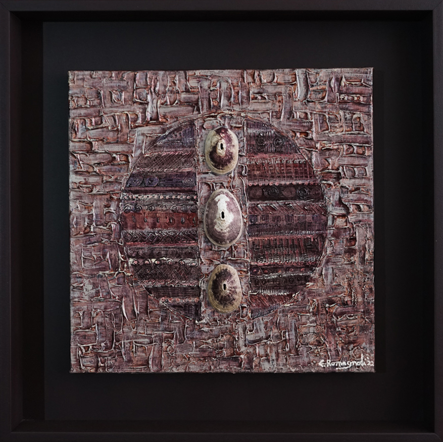 My life story and the influence of nature are now integrated into my work as an artist: Painting and textile art, as well as sea shells, dance together in my art.