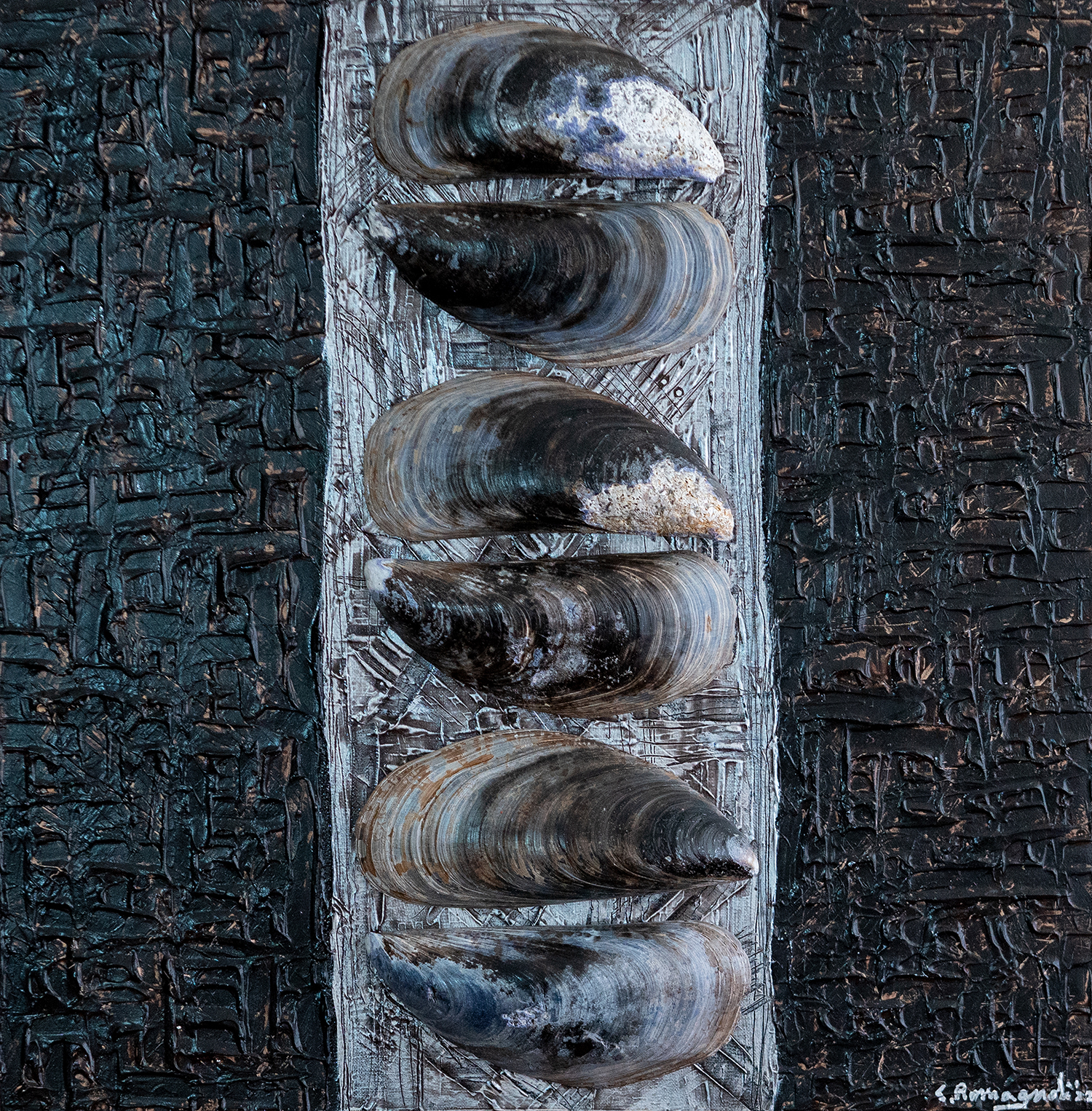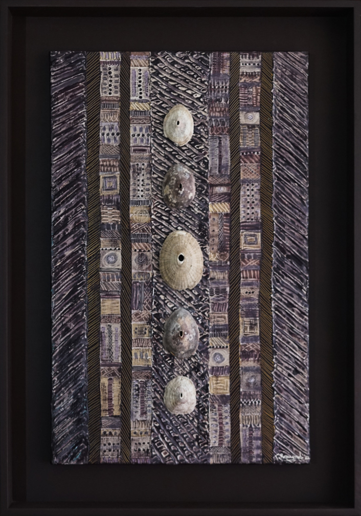 - Artworks with geometric patterns of various unique shells, which form harmonic pieces of art.